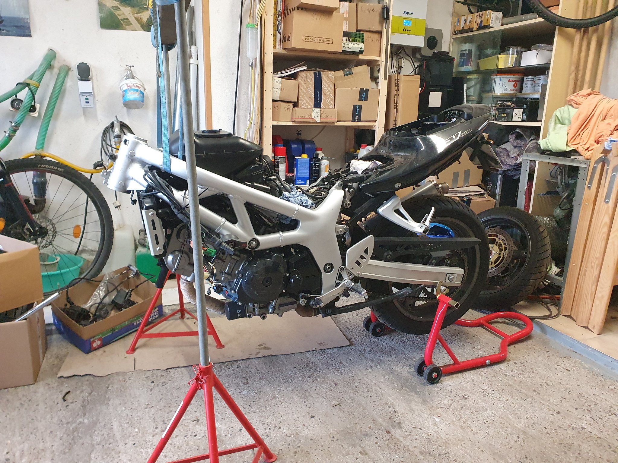 Dann habe ich zwischendurch meine R6 fürs Wohnzimmer hübsch gemacht und mich im Winter, mithilfe von Jan, ans Fahrwerk gewagt.