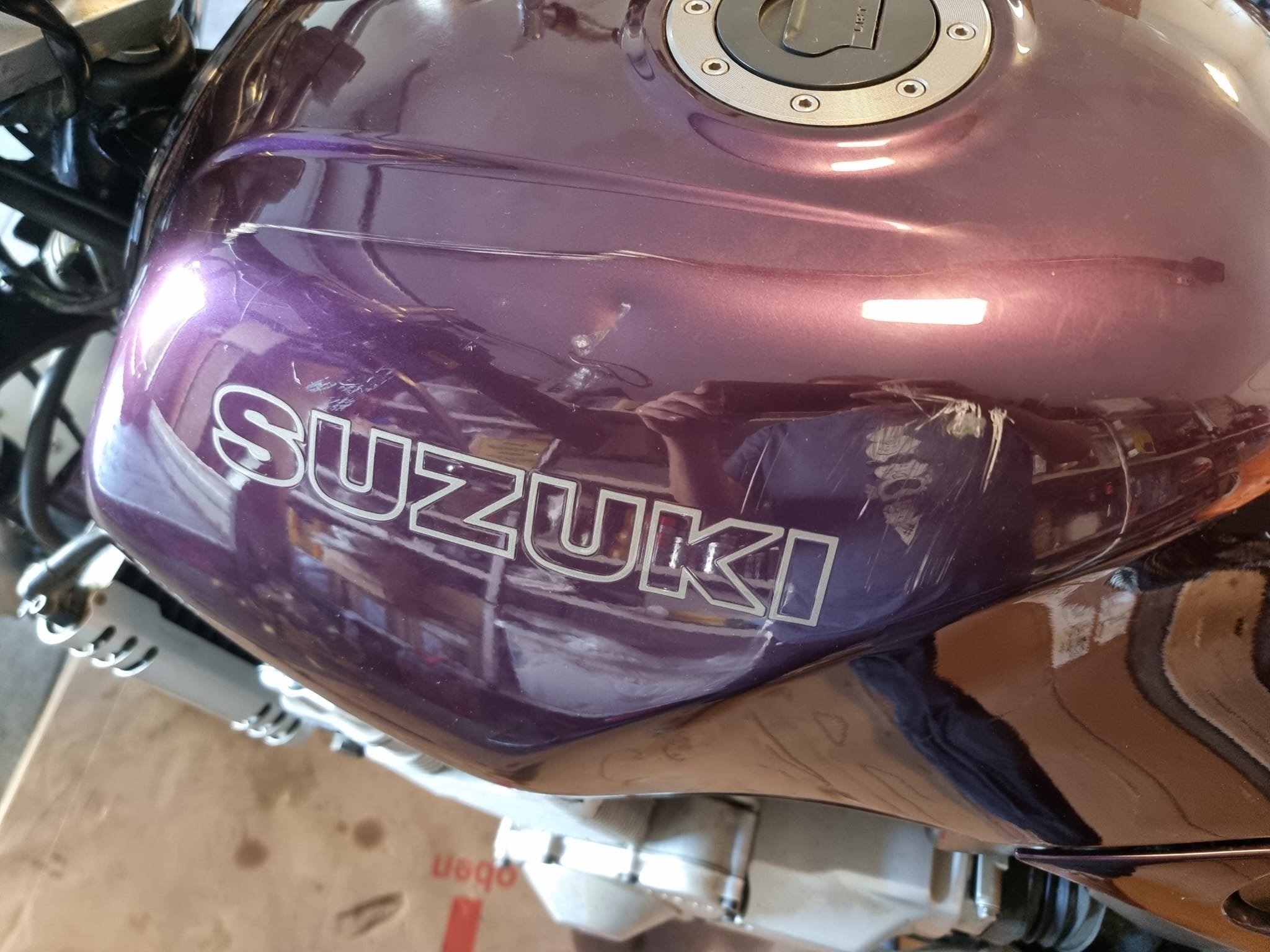 Es ist das Lila der GSX-R 600 alstare und bei der GSX600F aus den 90er mit dem Gelb-Türkis-Lila Dekor hatte das Dekor und die Felgen die Farbe. Ich wollte gerne das Deep Purpel (1HU) für die SV haben aber das gab es nur bei RH-Lacke, relativ teuer und nur als Lack für die Lackierpistole. da ich nicht alles in einem Durchgang lackiert habe wäre das nicht praktikabel gewesen.