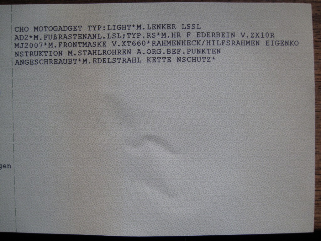 Über die Kennzeichenhalterung mache ich mir noch Gedanken. wichtig waren vor Allem erstmal die Eintragungen :)