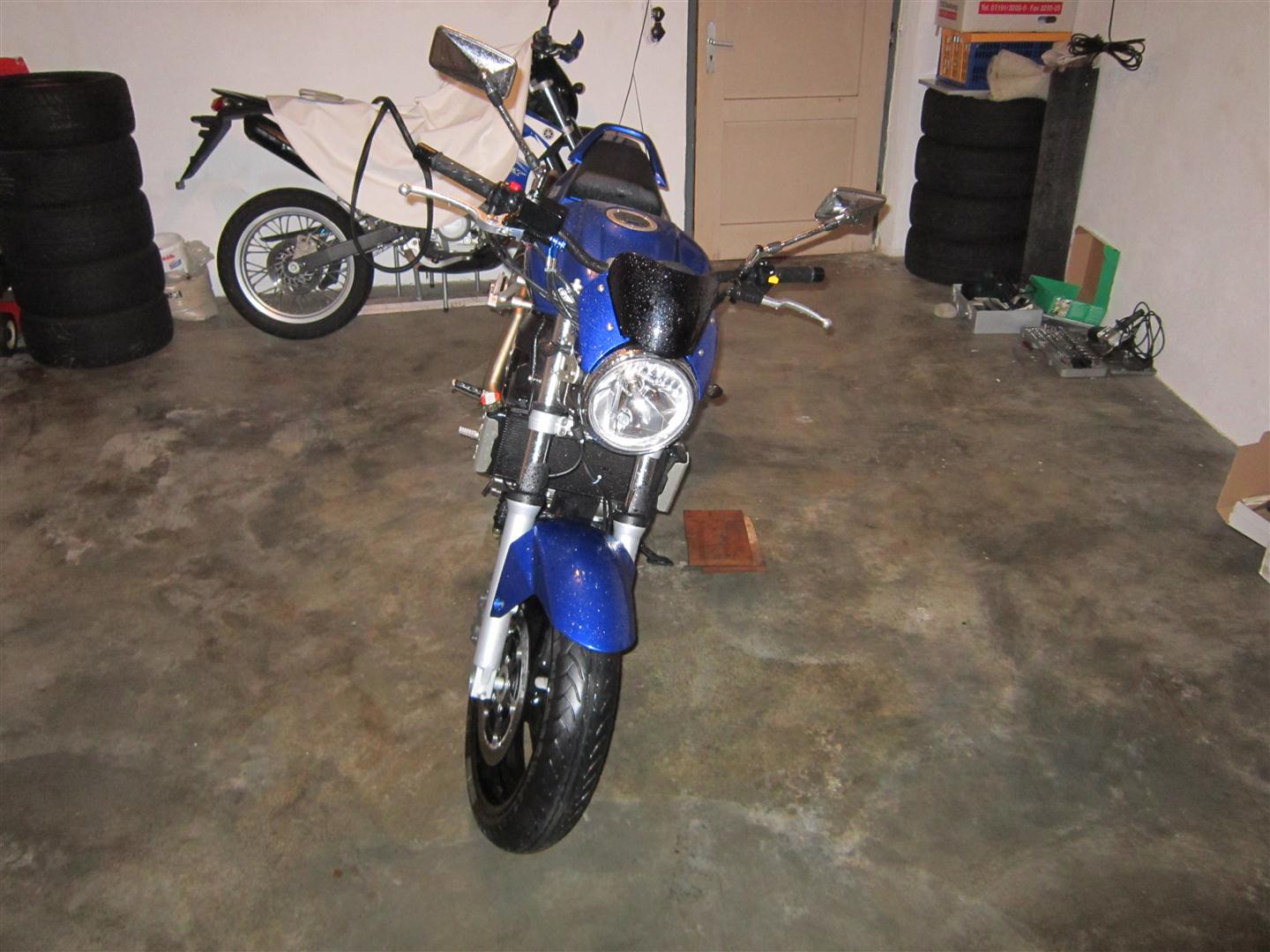 so ganz zufrieden bin ich noch nicht damit, insbesondere dass der untere Gaszug jetzt auf der Bremsleitung liegt (hab den schon mal vorsichtshalber etwas mit Isolierband umwickelt...^^)
