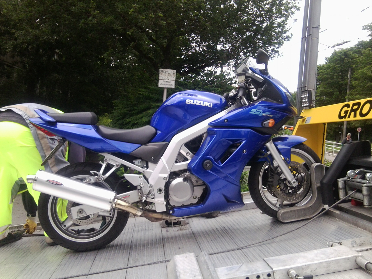 Display bleibt dunkel, Batterie - Spannung überprüft (i.O.), Sicherungen überprüft (i.=.)Ich habe dann am Folgetag die gelben Engel verständigt ( ich habe zuvor eine nagelneue Batterie eingebaut , um diese Fehlerquelle auszuschliessen), nach 5 Stunden Warte - und Ratlosigkeit aller Beteiligten dann Verständigung vom Abschleppservice und ab zum Fachhändler.Die Maschine ist nicht umgefallen ( was den Sturzsensor eigentlich auch unbehelligt belassen sollte).