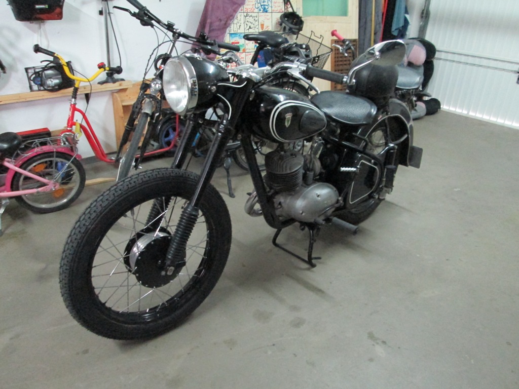 Die Gabel federt aber leider im Moment nicht sauber, muss noch eine neue distanzhülse für unten drehen... Zzt. ist sie minimal verspannt, woher das kommt weiss ich nicht, entweder Toleranzen der 50er Jahre, oder sie ist wirklich "krumm" die Standrohre gehen von oben bis unten 2mm auseinander...
