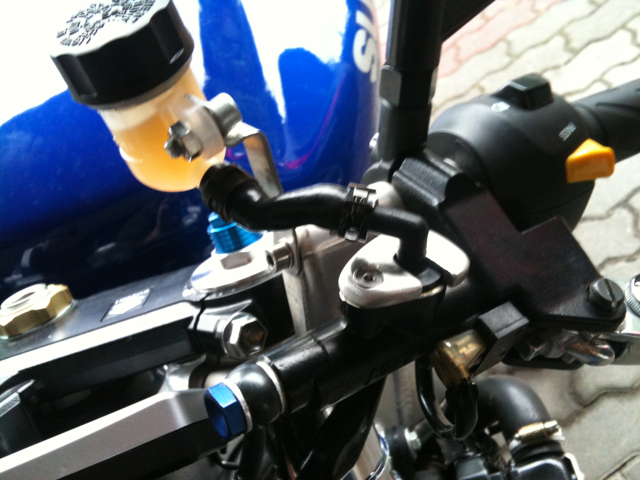Hab heute den originalen Ausgleichsbehaelter entfernt in dem ich die Schraube mit der der Behaelter von innen in der Kupplungspumpe verschraubt ist entfernt habe. Leider war diese mal wieder eine von der weichen Sorte, so dass mir am Ende nichts weiter als ausbohren blieb, da der Kreuzschlitz allein vom anschauen schon rund wurde.