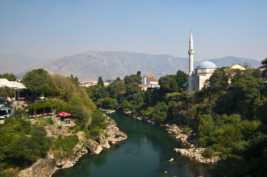 Wir treffen in Mostar ein, eine Stadt die im Bosnienkrieg so vieles erdulden musste und bis heute in zwei Hälften geteilt ist. Eine bosniakisch-islamische und serbisch-christliche Hälfte. So ruft auf der einen Flussseite der Muezzin zum Gebet und auf der anderen läutet es aus den Kirchtürmen.