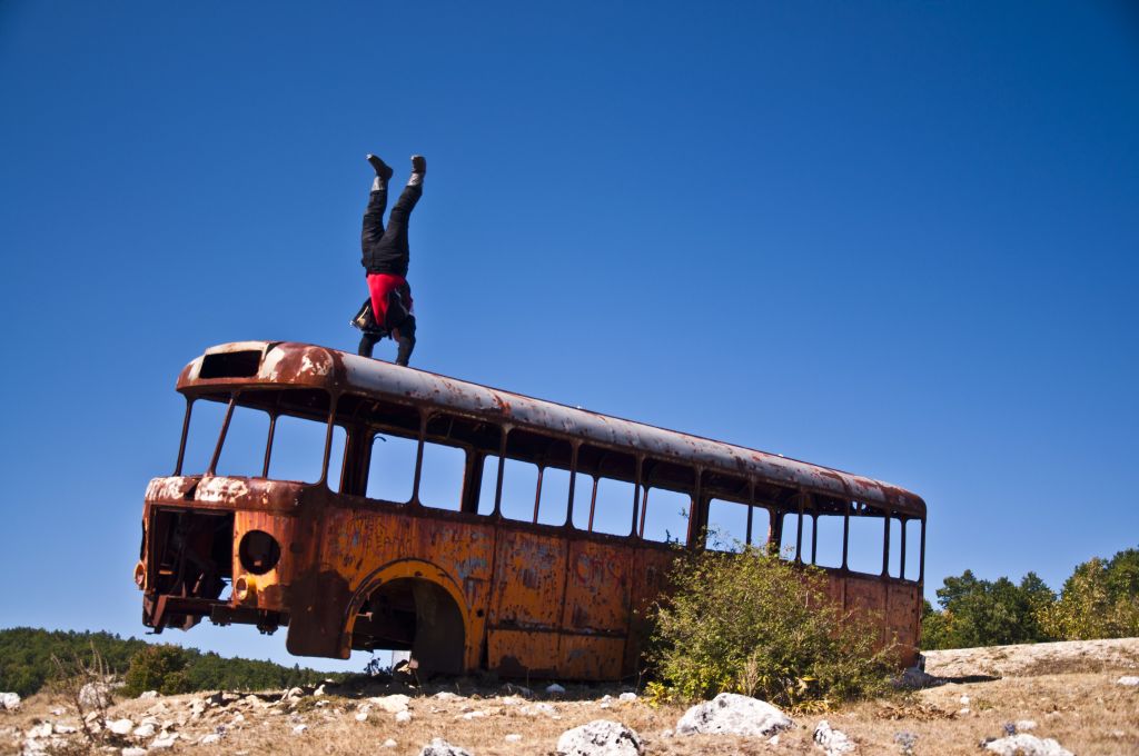 Ein alter Schulbus am Strassenrand lässt das Kind im Manne wieder aufleben. :mrgreen: