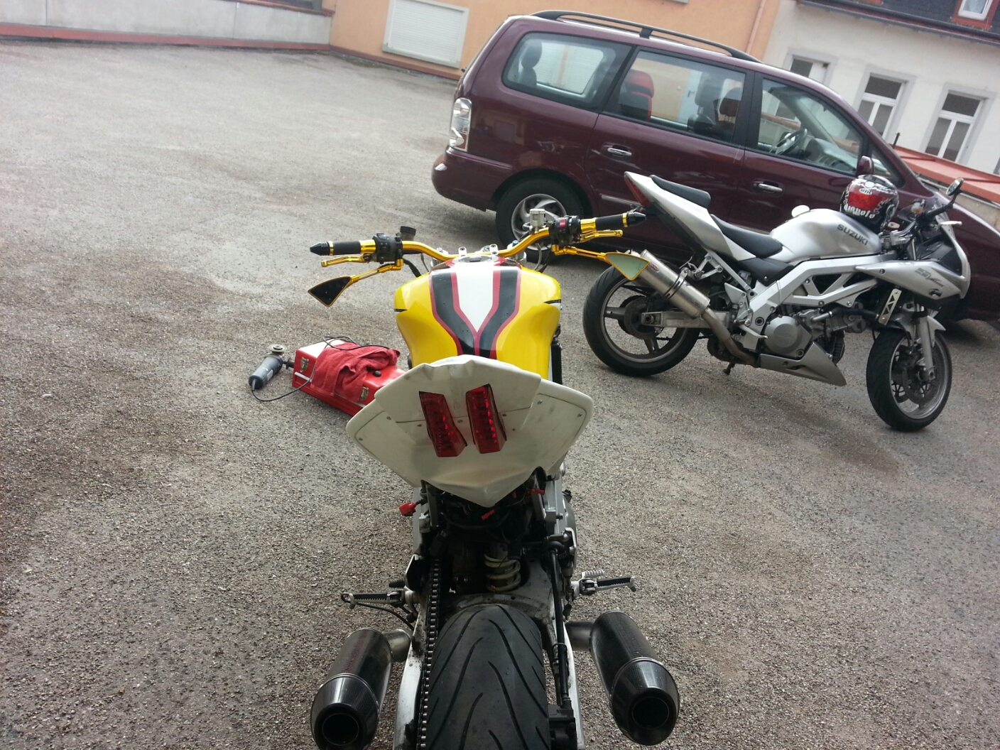 Ich werd den Tank so übernehmen, bis auf, dass ich des Gelb in weiss lackiere und danach asuf diesem weissen bereich Airbrush in Form von einem Drachendesign und schwarzen Mustern draufg mach...
