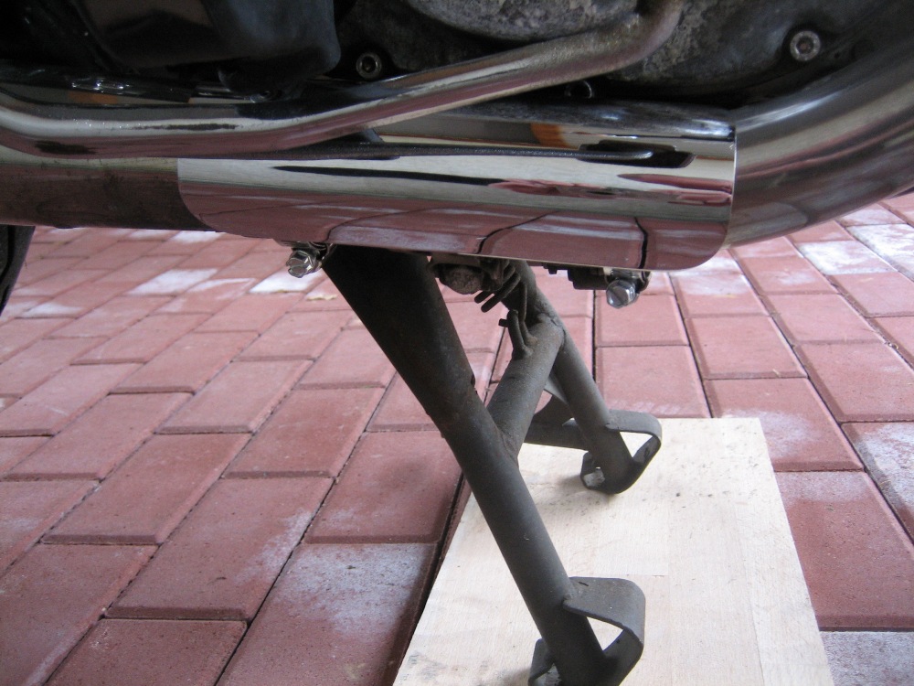 Dann noch auf der linken Seite einen schicken Griff montiert, um das Bike sicher auf den Hauptständer zu bekommen.