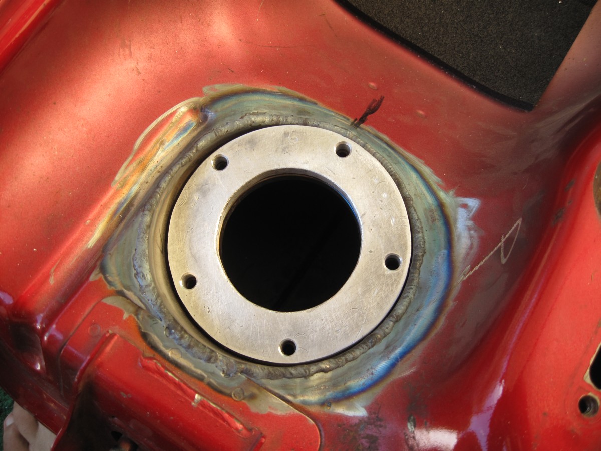 Die Heckrahmenquerstreben (geschnitten per Wasserstrahl) werden morgen eingepasst. M12er Gewinde in Edelstahl zu schneiden ist nicht ganz meins... . Nebenbei wurde die Distanz für den Benzinpumpenflansch fertig. Leider muss der Tank um 2cm hochgelegt werden, da überlege ich mir im Winter etwas als Abdeckung