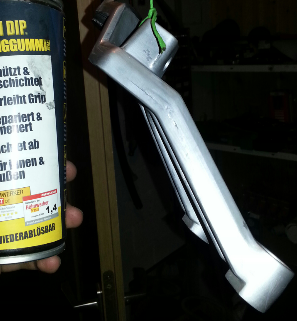 Anschließend hab ich die Fußrastenhalterung abgeschraubt und in schwarz ''gedippt ''. Sieht meiner Meinung nach sehr gut aus 8)