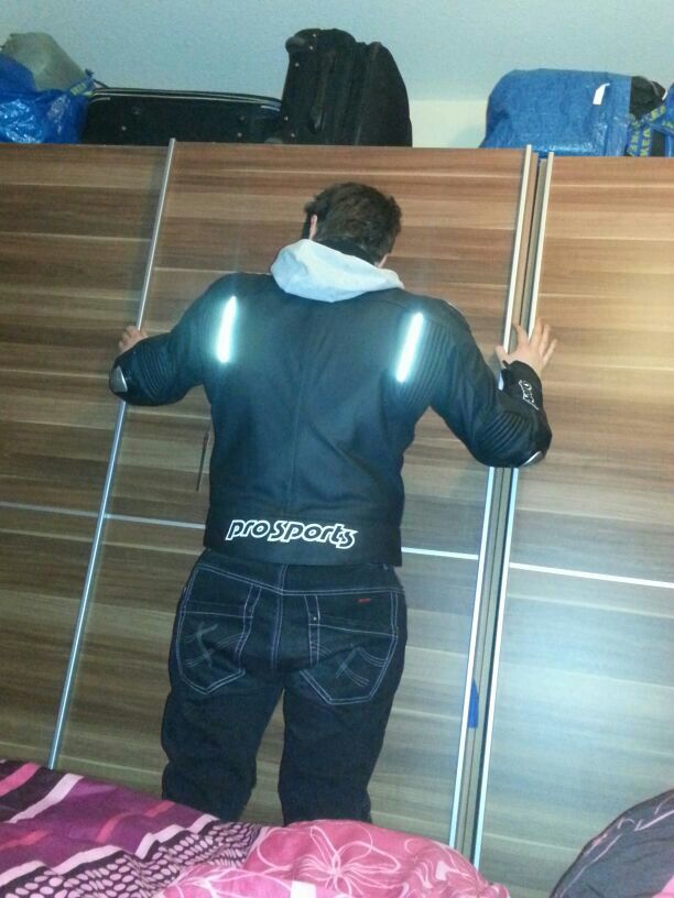 Da du auf den Bildern die Hose ziemlich tief trägst :mrgreen: ist schwer zu sagen ob die Jacke jetzt besonders kurz ist. Zieh mal ne Motorradhose dazu an und schau ob die Verbindungsreißverschlüsse auf einer ähnlichen Höhe sind. :idea: