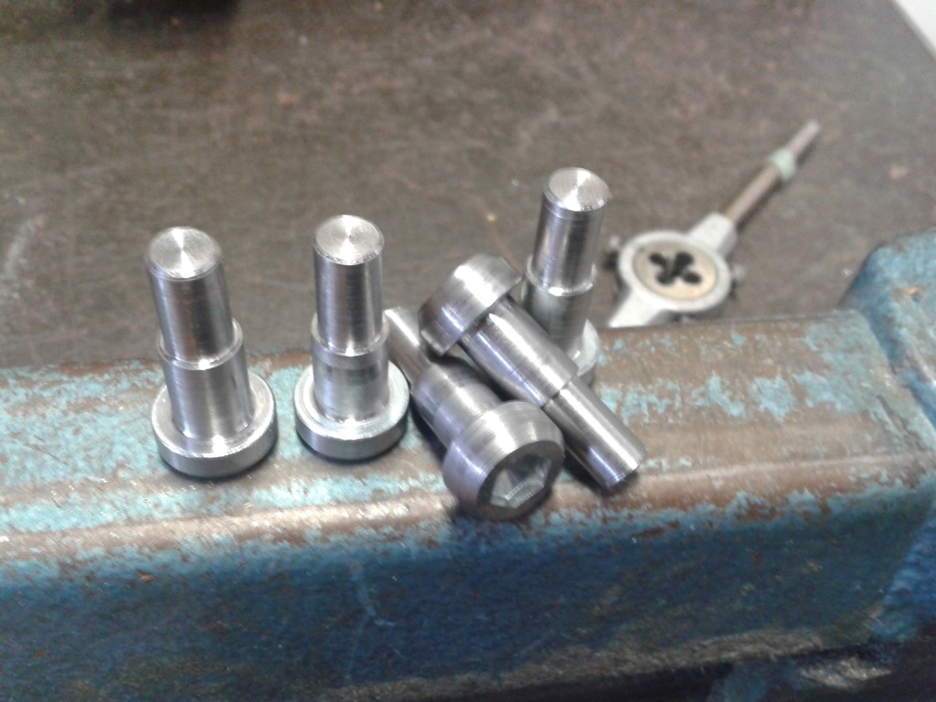 Heute konnte ich endlich anfangen den Distanzring zu drehen. Letzte Woche habe ich die Schrauben dafür gedreht. Diese sind aus einer M10 Schraube herraus gearbeitet.