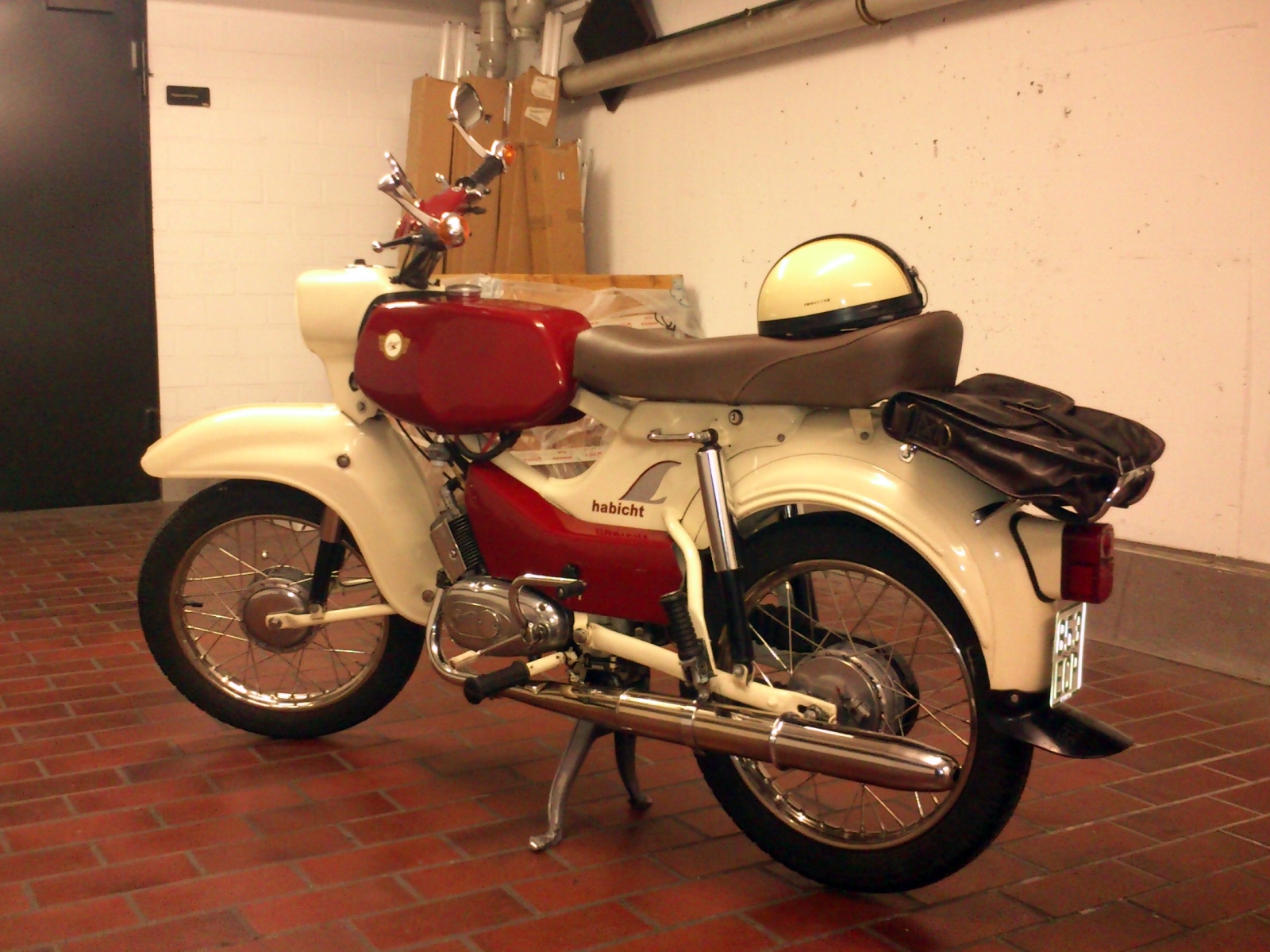 Da ich keine Lust habe mich mit dem Auto nach Frankfurt zur Maloche zu quälen und ich an der Suzi keine eckigen Räder mag ist der Habicht Bj 74 (einer der letzten) heute mein Hauptverkehrsmittel.