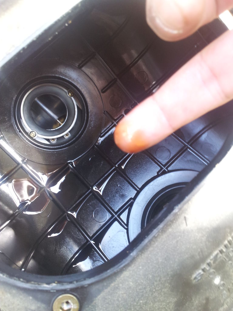 Zwischenzeitlich habe ich auch den Luftfilter mal ausgebaut. Am Boden des Luftfiltergehäuses ist ein wenig Flüssigkeit, vielleicht ein paar Milliliter. Riecht nach Öl/ein wenig nach Benzin. Ist das normal so? :) Ohne Luftfilter mal gezündet, gleiches Spiel. Anlasser rödelt, ohne dass die Maschine angeht.
