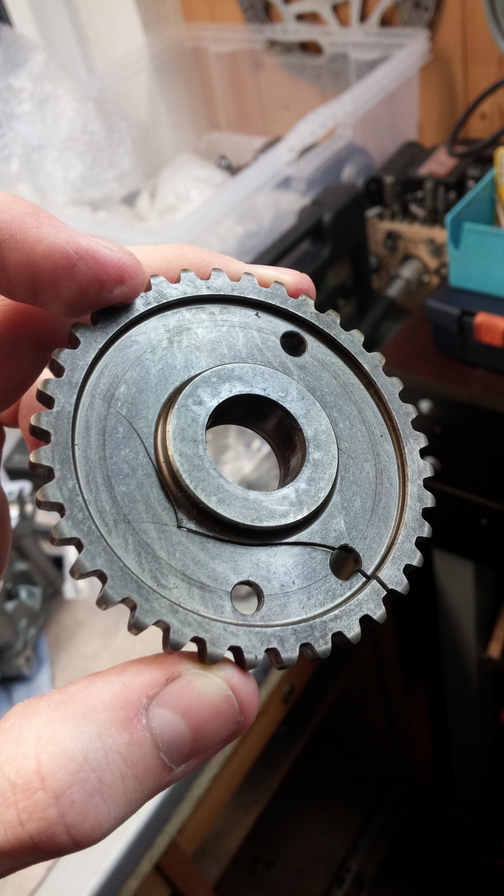Eigentlich kann das jeder selbst machen, man muss nur wissen wie. So sieht das Ganze aus wenn man an der falschen Stelle drückt, das Kettenrad ist nämlich gehärtet