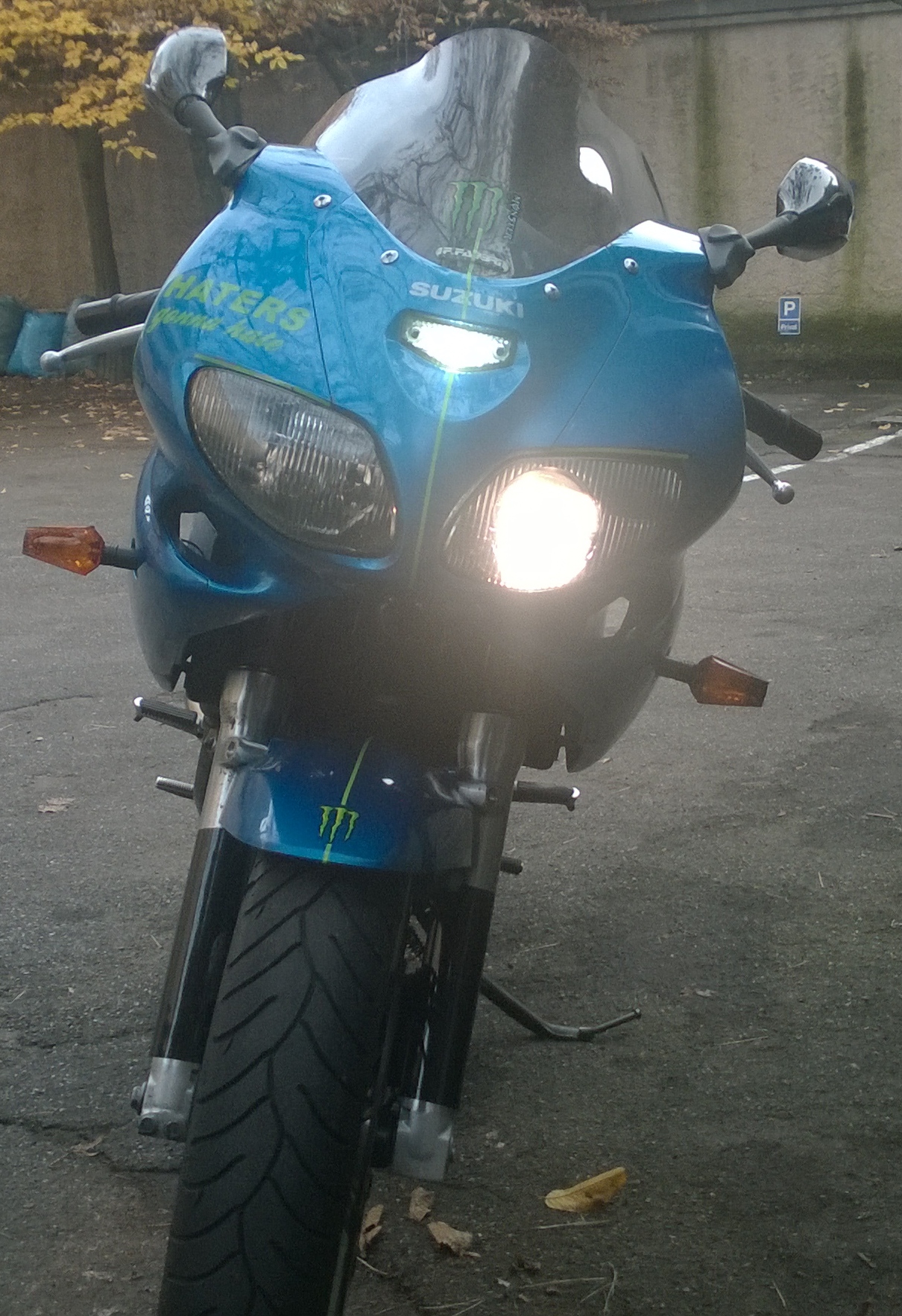 Plakette bekommen :) :D Hab mir erst schon in die Hosen gemacht als ich den strengen Prüfer von letztem mal in der Halle rumspringen sah. Kam aber zum Glück ein anderer. Am Heck wurde nichts bemängelt...hatte ja die Streben am Rahmen abgesägt :P Wegen dem GSXR Rücklicht hatte er auch nichts gesagt.