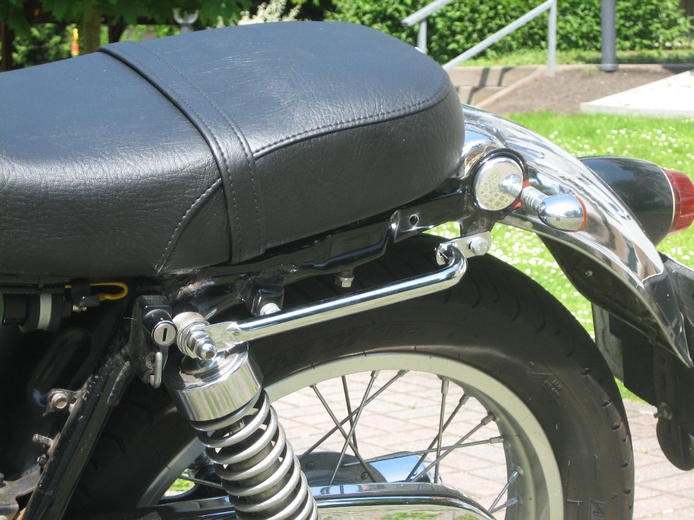 Okay, sie ist nicht geputzt und die Kabelei der hinteren Blinker muß ich auch neu verlegen. Aber ich mag diesen langen blanken Kotflügel und dann noch diese blanken Abdeckungen der Verschraubung zwischen Kotflügel und Rahmen.