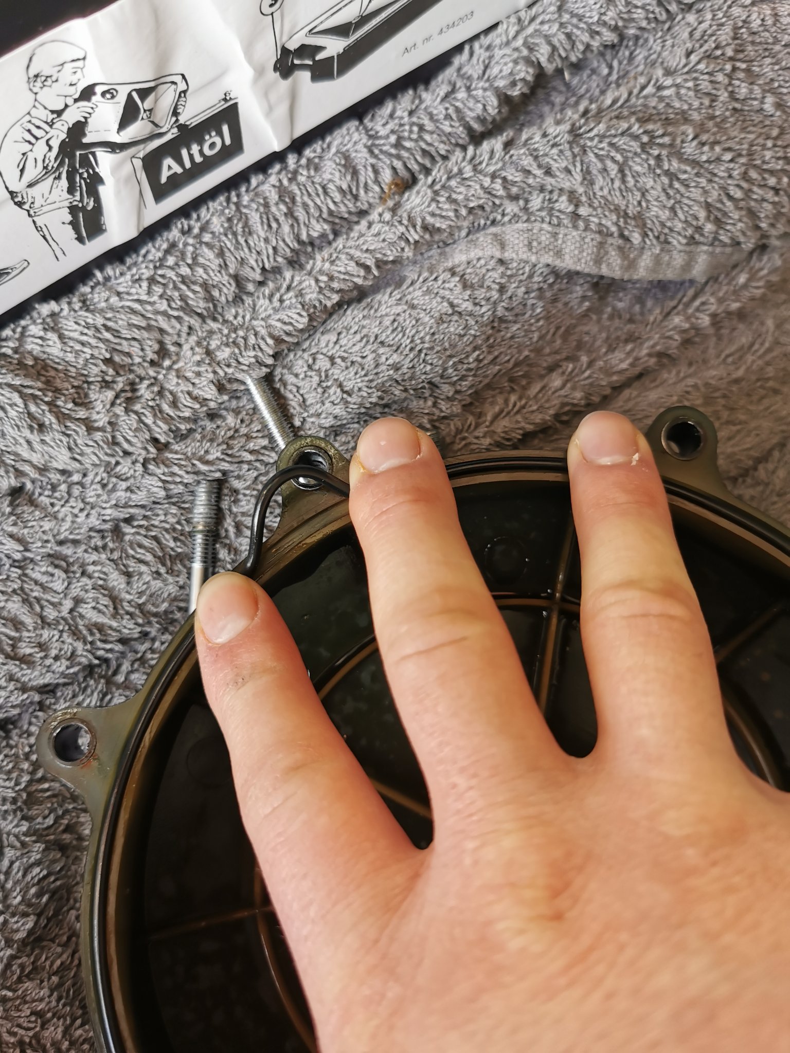 zufälle gibts, ich habe den gestern abend eingebaut. Klappt super, vorher habe ich den Deckel mit dem neuen O-Ring auf eine glatte Tisch unterlage gelegt und gemessen wie viel Spalt/Vorspannung darunter ist. Waren 0,6mm, das deckt sich mit der Messung der Nut (1,8mm tief und 2,4mm O-Ring).