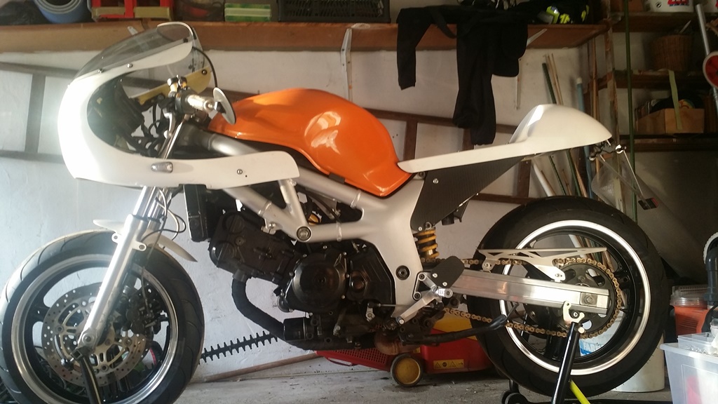 Und auch die neuen Fußrasten machen sich gut an der Mopete gleich viel besser ohne das Gummigeraffel Also heute Abend geht es wieder ein wenig weiter, evtl geht Sonntag alles noch zum lackieren.