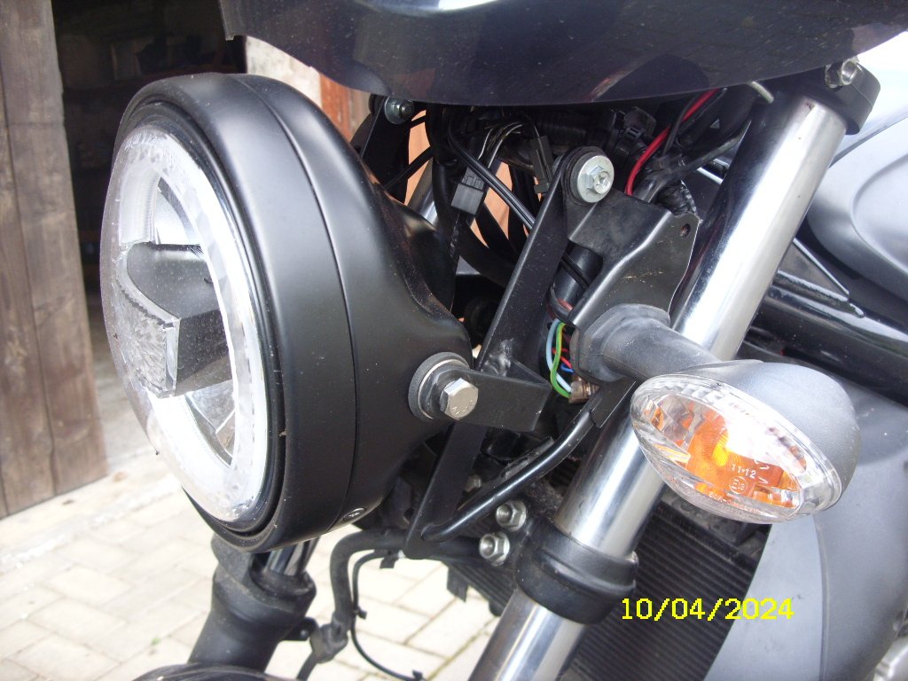 die Original Funzel ist nachts eine echte Beleidigung. Da bei mir Jahr 5000km Nachtfahrten zusammenkommen, bestand akuter Handlungsbedarf. Optische Überlegungen treten da in den Hintergrund. Davon abgesehen gefällt mir der Rundscheinwerfer sogar besser.