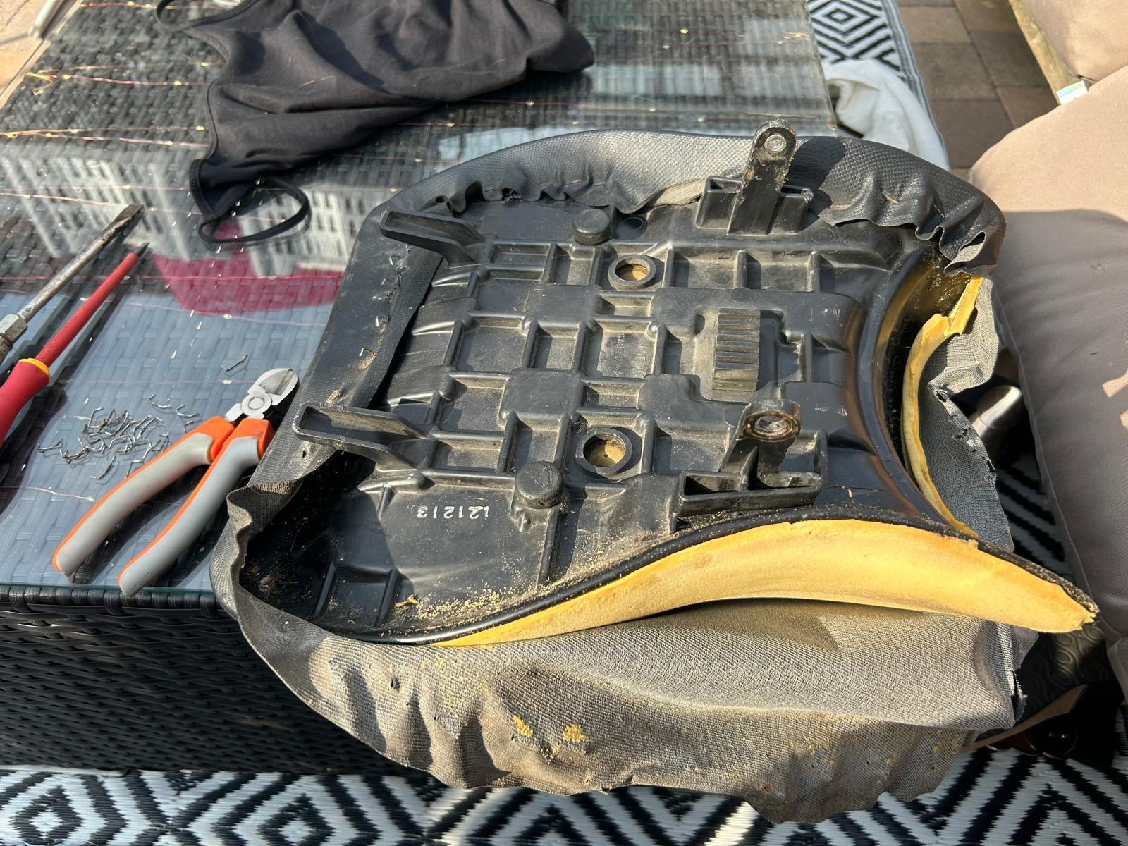 Ich Experimentiere auch seit letztem Jahr mit der Honda bank rum. Geht gut. Habe zuerst nur die hinteren Klammern des Fahrersitzes gelöst und ein 10mm Gelkissen eingeschoben. Sah kacke aus, weil es sich unterm Polster abgezeichnet hat. Saß man aber deutlich besser.