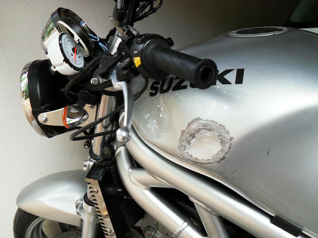 - Lenker verbogen (hat auch den Tank berührt.. --> Lenkeranschlag ist aber okay.. man sieht keinen Riss oder dergleichen)