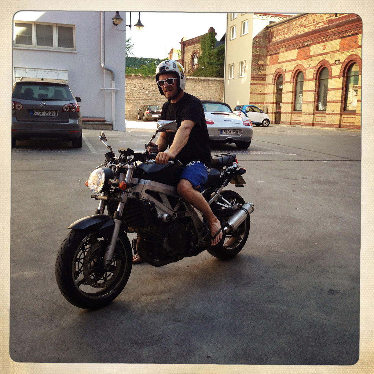 möchtest vielleicht noch etwas zu den Bildern sagen? Ich weiß damit gerade nichts anzufangen... Warum fehlt z.B. die Heckverkleidung? Aber hey, die Kombination aus Helm und Sonnenbrille gefällt mir :mrgreen: