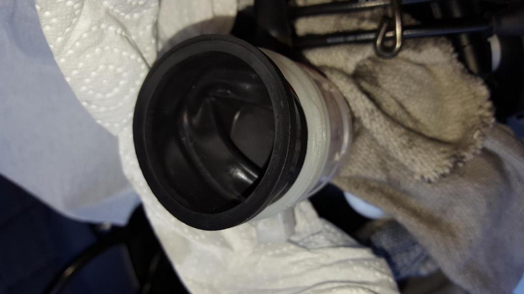 Die ist eindeutig beschädigt (verschrumpelt). Man weiß auch nicht warum, tippt auf "minderwertige Bremsflüssigkeit".