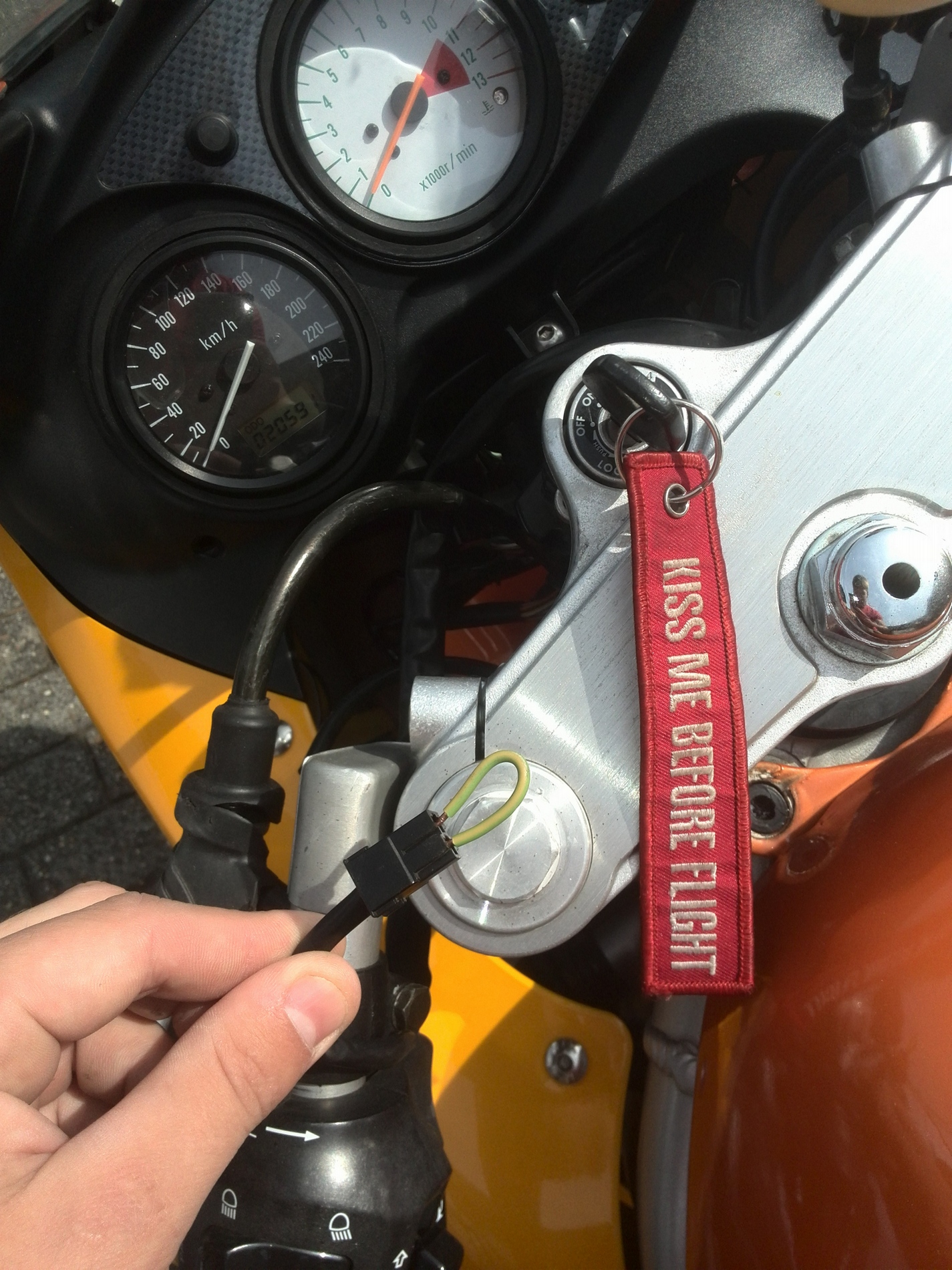durch. Darauf hin habe ich die Stecker alle überbrückt, also Kupplungsschalter und Seitenständerschalter,